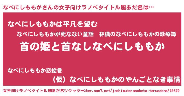 | 男性向けラノベタイトル風あだ名 | 『はたらくなべにしももかさま!』 |