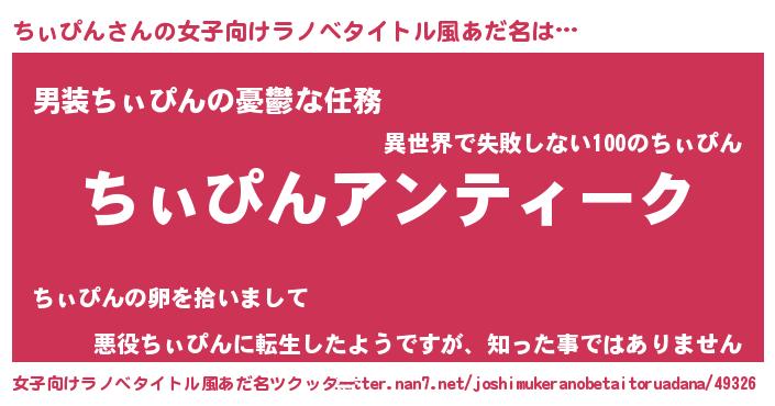 | 意味不明あだ名 | 『自称ちぃぴん』『永久保存ちぃぴん』 |