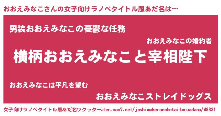 | 男性向けラノベタイトル風あだ名 | 『おおえみなこに滅ぼされるだけの簡単なお仕事です』 |