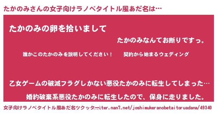 | 男性向けラノベタイトル風あだ名 | 『タカノミアートオンライン』 |