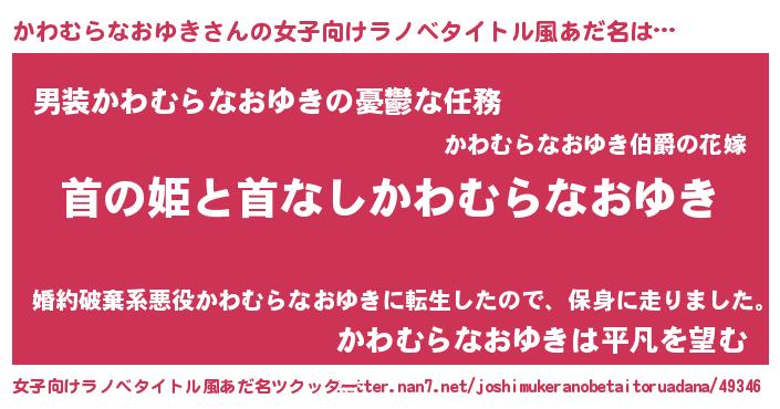 | 肩書あだ名 | 『かわむらなおゆきディレクター』 |