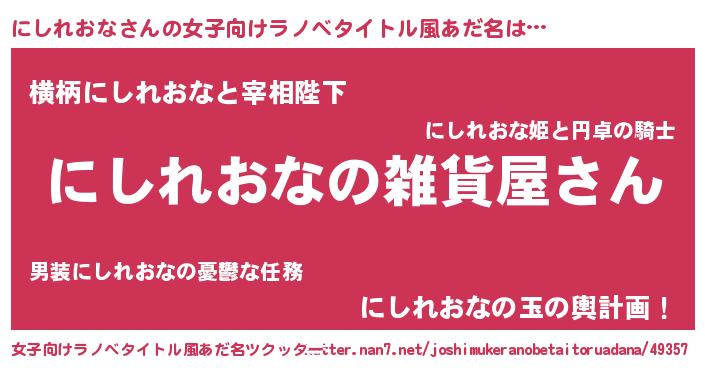 | 男性向けラノベタイトル風あだ名 | 『やはりにしれおなの青春ラブコメはまちがっている 』 |