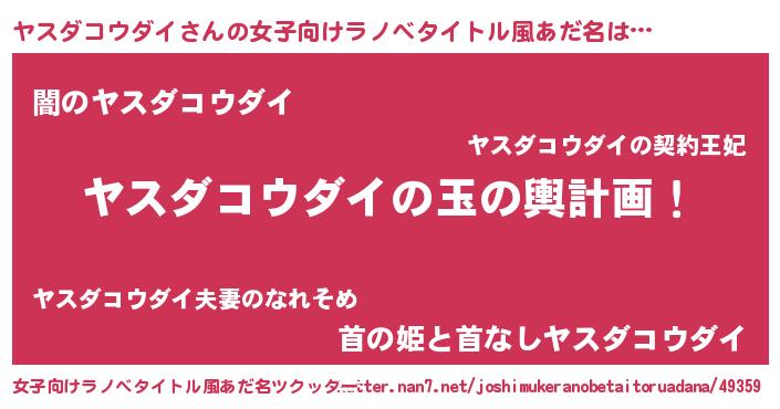 | 男性向けラノベタイトル風あだ名 | 『ヤスダコウダイ~年齢イコール彼女いない歴の魔法使い~』 |