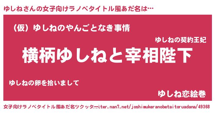 | 意味不明あだ名 | 『ペロリンゆしね』『永久保存ゆしね』 |