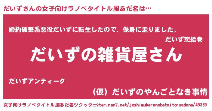 | 胡散臭い通販商品みたいなあだ名 | 『幸せが訪れる高級そうな壺…その名も「だいず」』 |