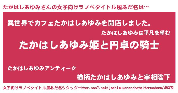 | 胡散臭い通販商品みたいなあだ名 | 『モテモテ間違いなし水晶球…その名も「たかはしあゆみ」』 |