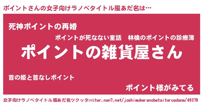 | 男性向けラノベタイトル風あだ名 | 『やはりポイントの青春ラブコメはまちがっている 』 |