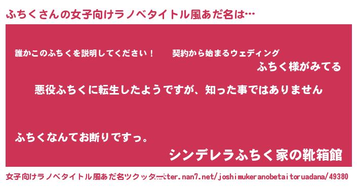 | 胡散臭い通販商品みたいなあだ名 | 『あなたにだけ特別に提供する100年もののヴィンテージワイン…その名も「ふちく」』 |