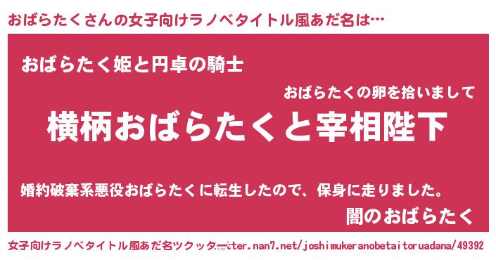 | 男性向けラノベタイトル風あだ名 | 『おばらたくに滅ぼされるだけの簡単なお仕事です』 |