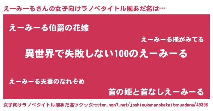 | 男性向けラノベタイトル風あだ名 | 『えーみーるという概念が存在しない退屈な世界 』 |
