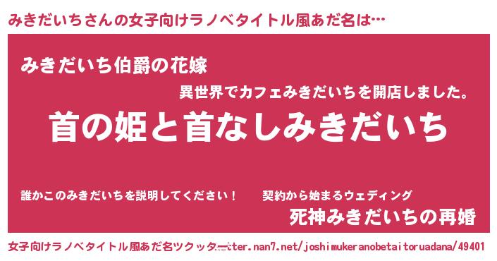 | 男性向けラノベタイトル風あだ名 | 『はたらくみきだいちさま!』 |