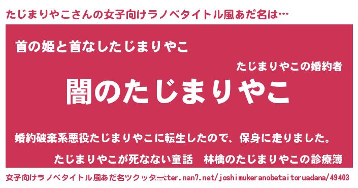 | 胡散臭い通販商品みたいなあだ名 | 『テレビで話題の高麗人参…その名も「たじまりやこ」』 |
