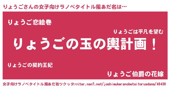 | 男性向けラノベタイトル風あだ名 | 『りょうご~年齢イコール彼女いない歴の魔法使い~』 |