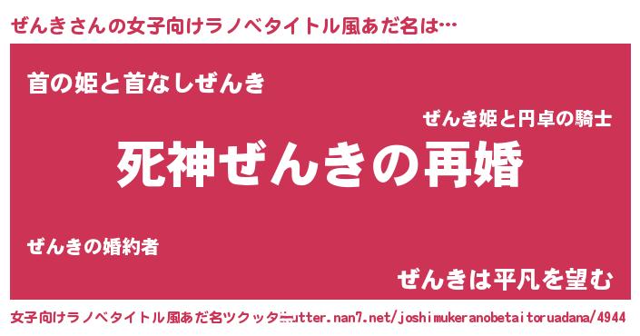 | 男性向けラノベタイトル風あだ名 | 『ノーゲーム・ノーゼンキ』 |