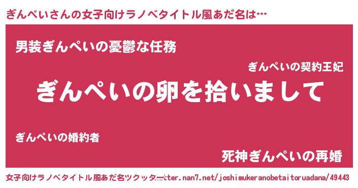 | 男性向けラノベタイトル風あだ名 | 『ダンジョンにぎんぺいを求めるのは間違っているだろうか』 |