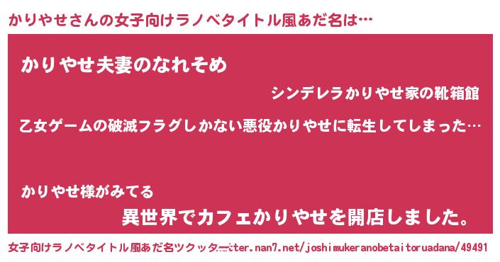 | 意味不明あだ名 | 『住所不定無職かりやせ(1歳)』 |