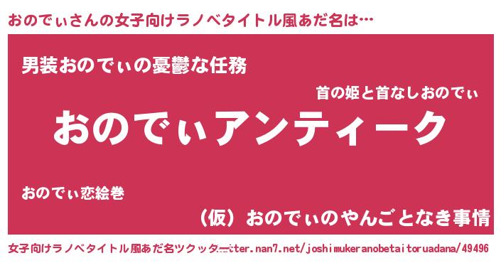 | 男性向けラノベタイトル風あだ名 | 『魔法科高校のおのでぃ』 |