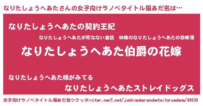 | 欧米人風あだ名 | 『なりたしょうへあたクリステル』 |