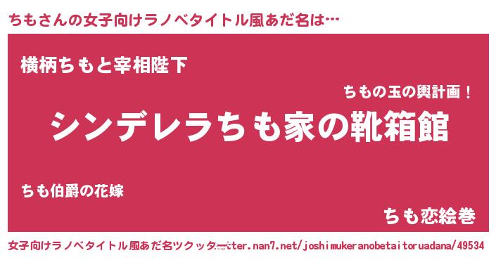 | 男性向けラノベタイトル風あだ名 | 『冴えないちもの育てかた』 |