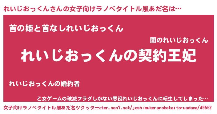 | 男性向けラノベタイトル風あだ名 | 『れいじおっくんという概念が存在しない退屈な世界 』 |