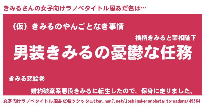 | 男性向けラノベタイトル風あだ名 | 『うちのきみるが世界を掌握している!』 |