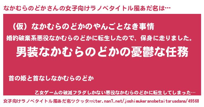 | 男性向けラノベタイトル風あだ名 | 『冴えないなかむらのどかの育てかた』 |