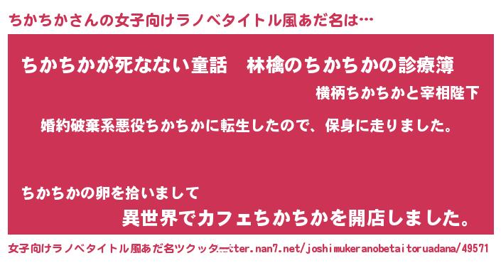 | 男性向けラノベタイトル風あだ名 | 『チカチカスレイヤー』 |