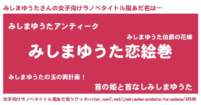 | 男性向けラノベタイトル風あだ名 | 『ノーゲーム・ノーミシマユウタ』 |