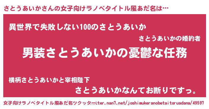 | 男性向けラノベタイトル風あだ名 | 『冴えないさとうあいかの育てかた』 |
