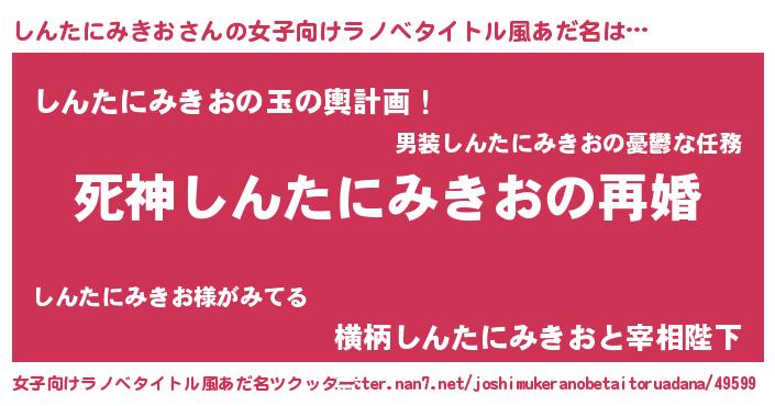 | 男性向けラノベタイトル風あだ名 | 『ノーゲーム・ノーシンタニミキオ』 |