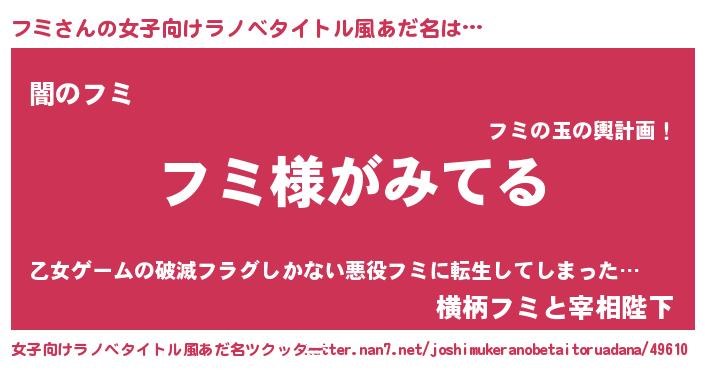 | 男性向けラノベタイトル風あだ名 | 『フミの嫁は女の子じゃないと思った?』 |