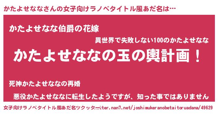 | 男性向けラノベタイトル風あだ名 | 『転生したらかたよせななだった件』 |