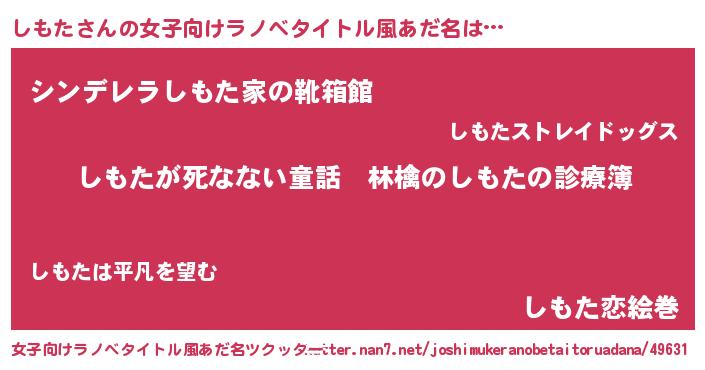 | 男性向けラノベタイトル風あだ名 | 『魔弾の王としもた』『緋弾のシモタ』 |