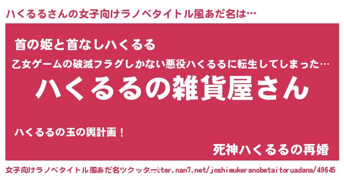 | ファンタジー風あだ名 | 『エターナルハクルルー』『クインハット』 |