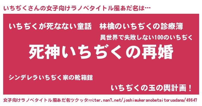 | 男性向けラノベタイトル風あだ名 | 『ノーゲーム・ノーイチヂク』 |