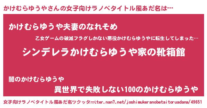 | ヘコむあだ名 | 『かけむらゆうや(爆)』『かけお』 |