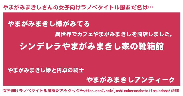 | 胡散臭い通販商品みたいなあだ名 | 『信頼と実績のペンダント…その名も「やまがみまきし」』 |