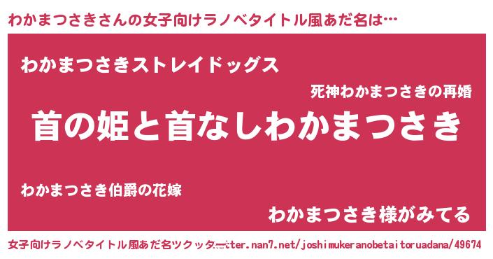 | 意味不明あだ名 | 『自称わかまつさき』 |