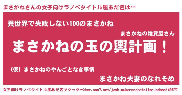 | 可愛いあだ名 | 『まさぷりん』『まさかねママ』 |