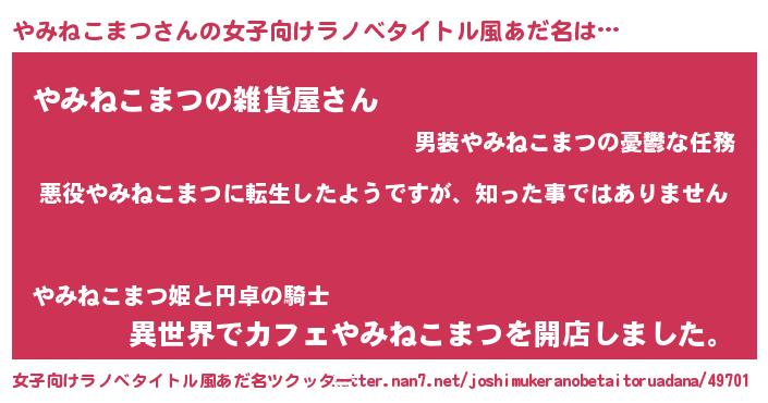 | 意味不明あだ名 | 『住所不定無職やみねこまつ(79歳)』 |