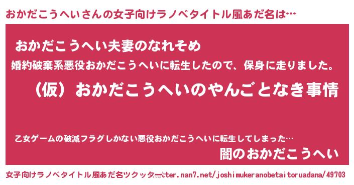 男性向けラノベタイトル風あだ名 | 『おかだこうへいの憂鬱』 |