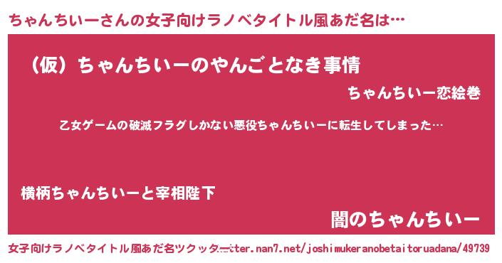 | 男性向けラノベタイトル風あだ名 | 『魔弾の王とちゃんちいー』 |