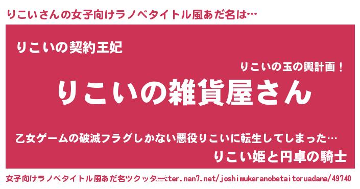| 男性向けラノベタイトル風あだ名 | 『やはりりこいの青春ラブコメはまちがっている 』 |