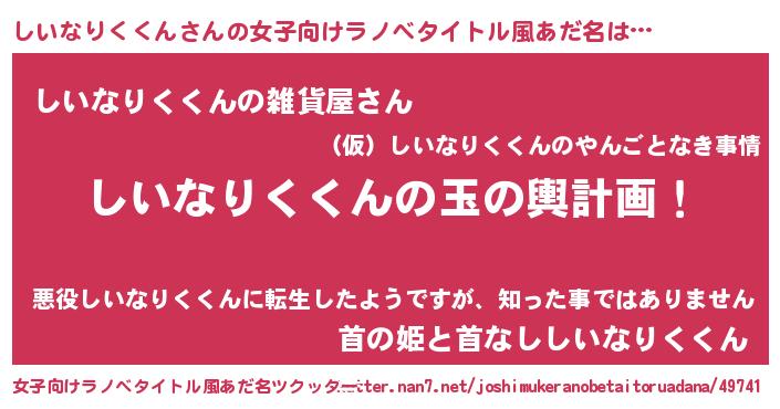 | 男性向けラノベタイトル風あだ名 | 『転生したらしいなりくくんだった件』 |