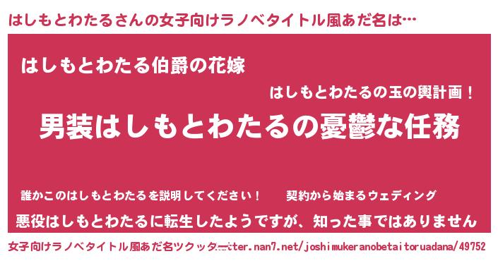 | 男性向けラノベタイトル風あだ名 | 『冴えないはしもとわたるの育てかた』 |