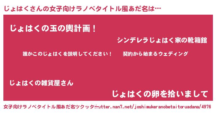| 意味不明あだ名 | 『ペロリンじょはく』『自称じょはく』 |