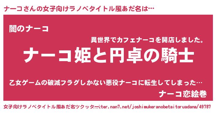 | 胡散臭い通販商品みたいなあだ名 | 『モテモテ間違いなし霊験あらたかなお札…その名も「ナーコ」』 |