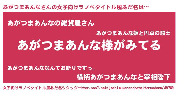 | 萌えアニメ | 主人公(あがつまあんな)のあだ名『 あがあがきゅん』 |