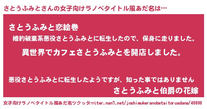| ヘコむあだ名 | 『さとうふみと(苦笑)』『なまこ酢』 |