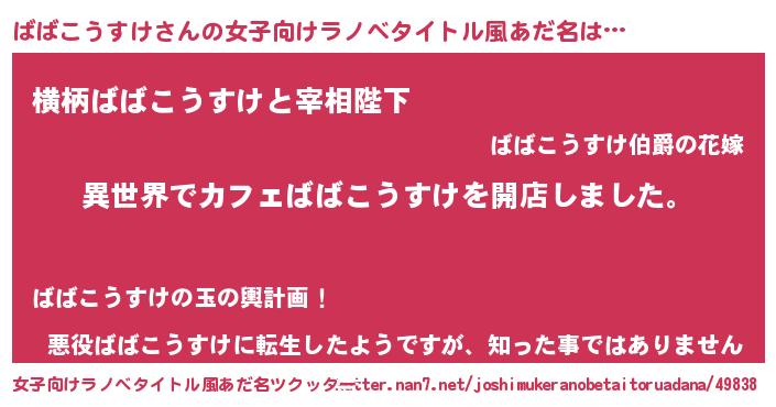 | 男性向けラノベタイトル風あだ名 | 『誰もが恐れるあのばばこうすけが、ぼくの専属メイドになるようです。』 |